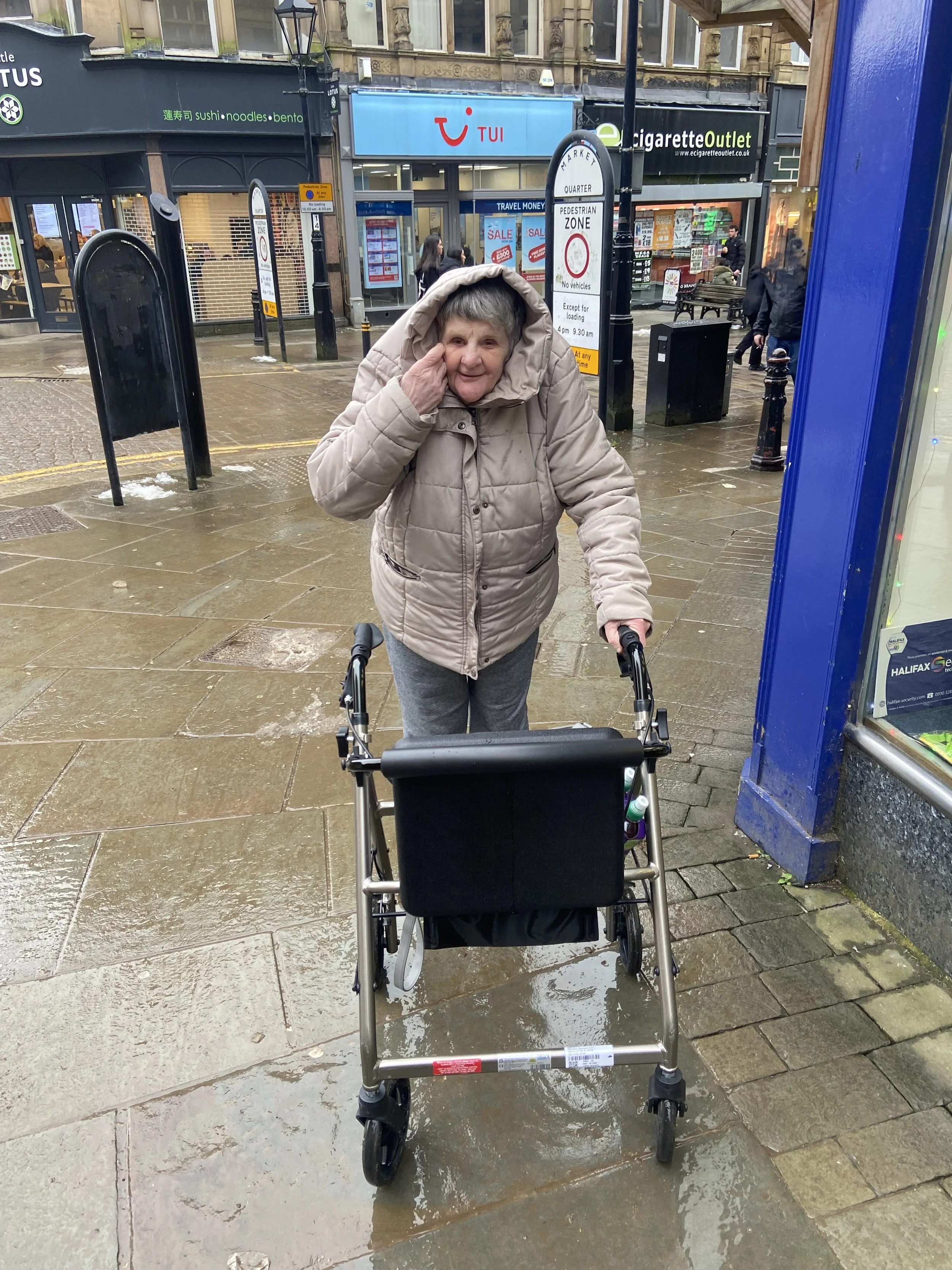 Joyce and Donna went to a rather wet Halifax town centre this week. They soon warmed up with a hot chocolate in the Borough Market. When they came home they made chocolate brownies (they looked delicious).